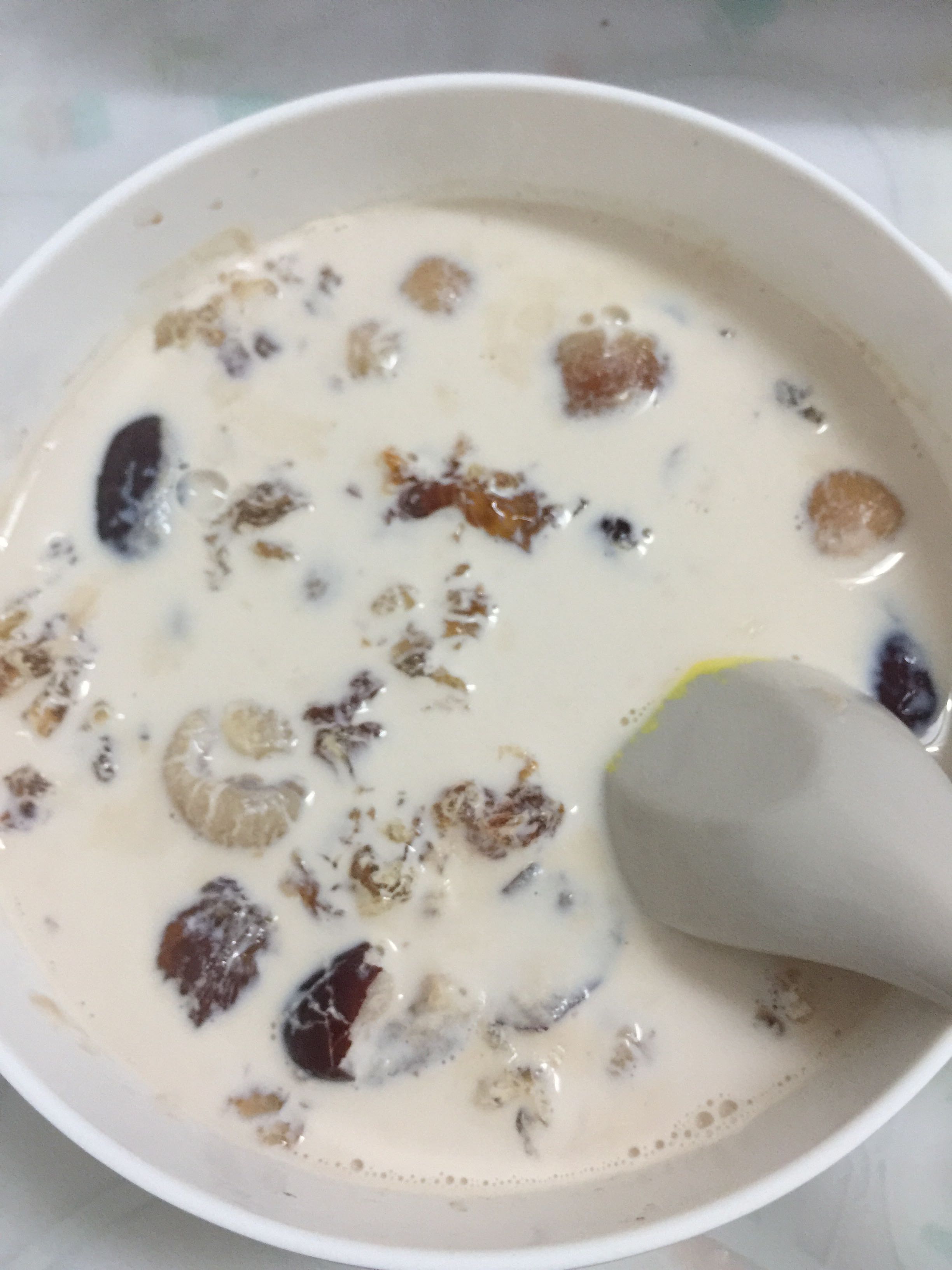 我燉咗一小時。耐咗。所以出來不是白色。失敗了。另外是否一要鮮奶+冰糖。我沒有加冰糖。所以有點奶酥味