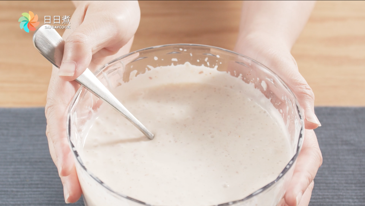 1.用攪拌機把花生、豆腐、牛奶、鹽一起打均勻。