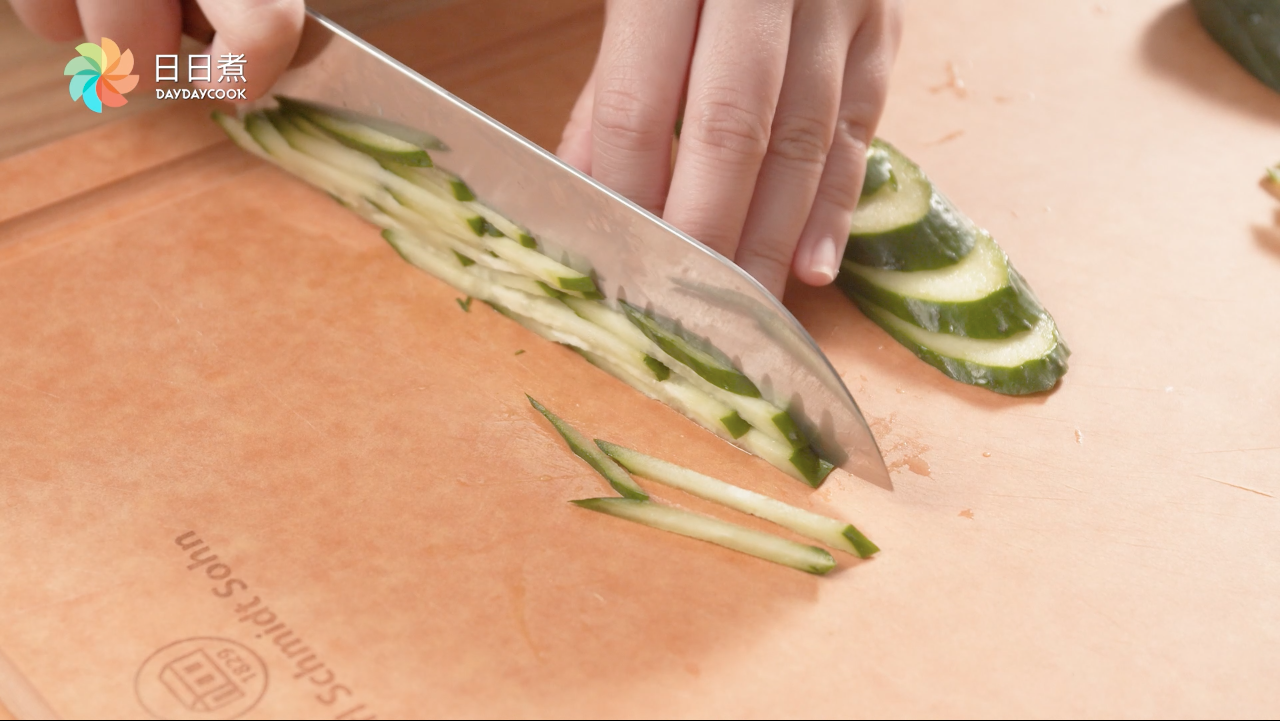 3.將青瓜切絲。
