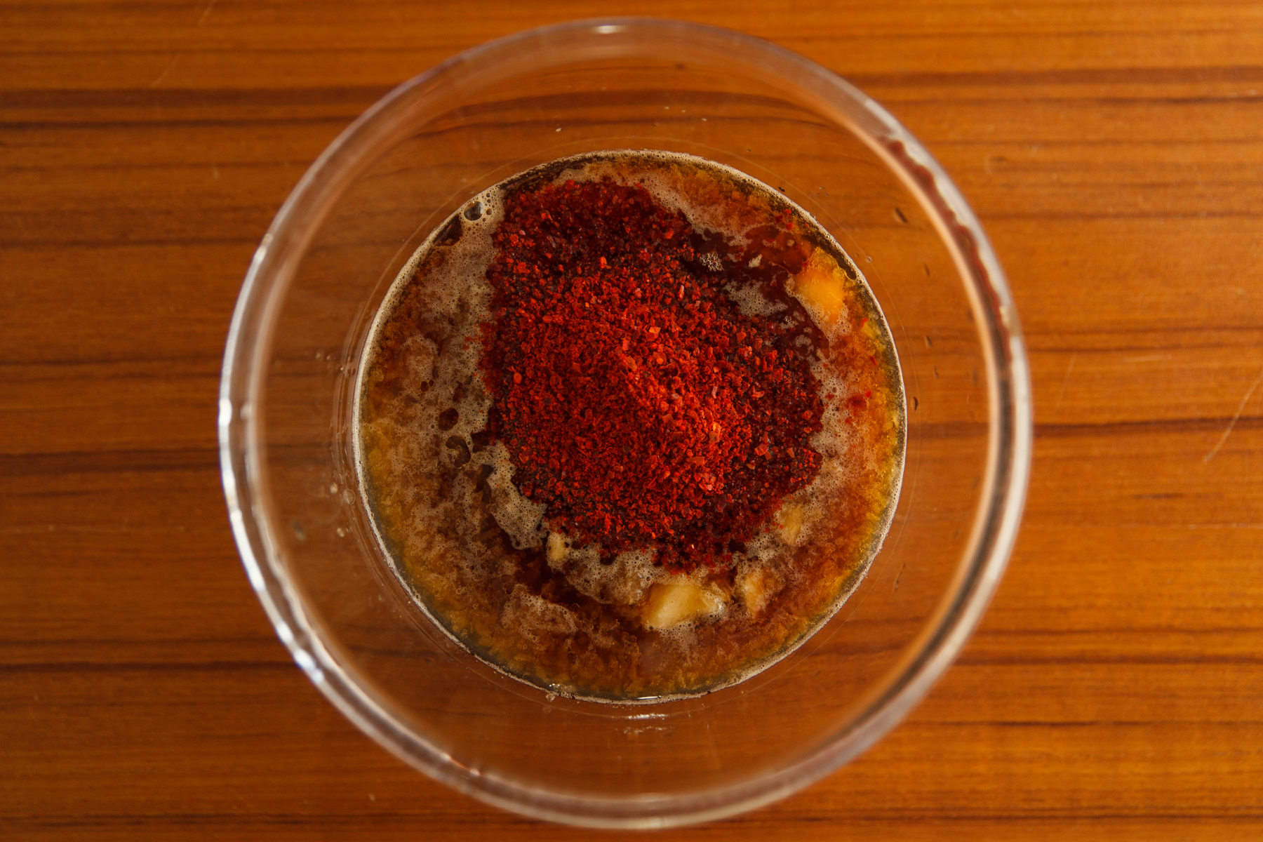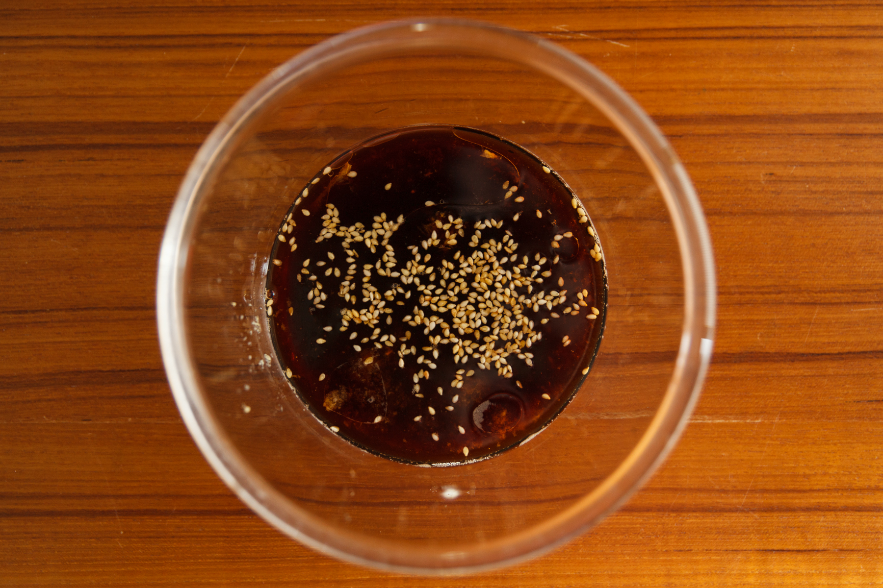 1.首先將和風烤肉醬的材料均勻混合備用。
