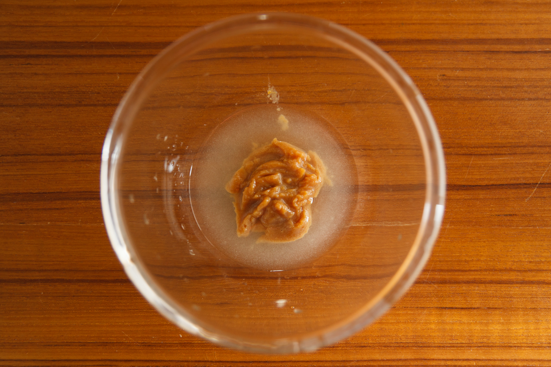 2.再來將和風味噌烤肉醬的味噌和清酒先混合調勻。