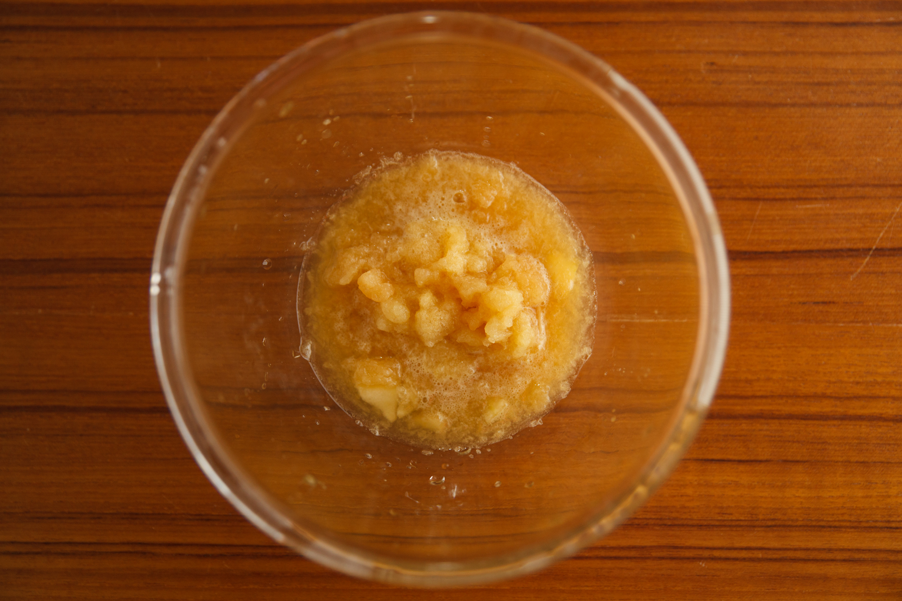 4.接著製作辣味烤肉醬,先將蘋果磨成泥。